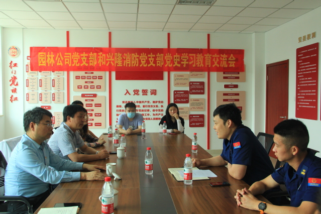首先開始的是黨史學(xué)習(xí)教育交流會,雙方就黨建品牌培育工作進(jìn)行了交流,興隆消防黨支部在建鄴消防救援大隊“紅門黨旗紅”黨建品牌建設(shè)牽引下,強(qiáng)堡壘、抓作風(fēng)、帶隊伍,保障了中心任務(wù)。園林公司黨支部以“鑄紅心·享園林”黨建品牌建設(shè)為牽引,凝聚思想、開拓創(chuàng)新,推動公司高質(zhì)量發(fā)展。之后,雙方就黨史學(xué)習(xí)教育開展情況進(jìn)行了交流,并提出要進(jìn)一步發(fā)揮雙方優(yōu)勢和特長,加強(qiáng)交流與協(xié)作,雙向促進(jìn)、共同提高。