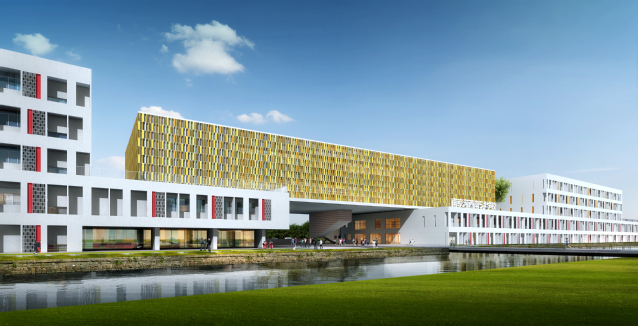 河西南部(5#)九年一貫制學校項目,位于南京市建鄴區(qū)友誼街以西、鄴城路以南,毗鄰南京兒童醫(yī)院。項目總建筑面積90121.66平方米,其中地下建筑面積40237.74平方米,地上建筑面積49883.92平方米;項目整體地下1層,地上5層,建筑高度22.80米。項目規(guī)劃建設(shè)6軌36班小學和10軌30班初中,設(shè)計有機動車位861輛,非機動車位1200輛。