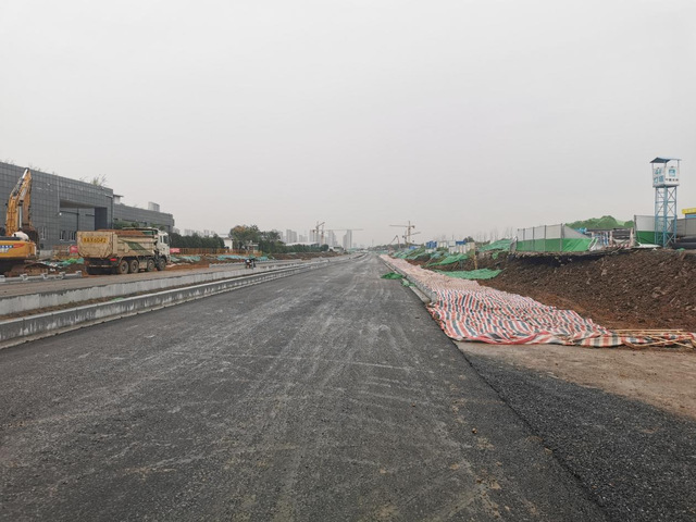 全力配合地鐵2號(hào)線西延建設(shè),河西南部地區(qū)秦新路道路工程瀝青首鋪