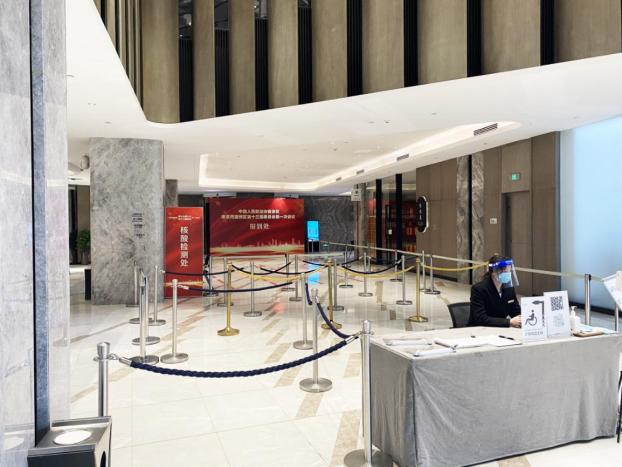 為落實疫情防控要求,營造安全與會環(huán)境,酒店對接待服務實行“會議閉環(huán)”專項方案。結合會議需求,充分利用自身場地優(yōu)勢,制定嚴格的閉環(huán)人員管控及后勤保障方案,將會議中心、部分大堂區(qū)域及客房樓層劃入閉環(huán)管理,為與會人員規(guī)劃獨立的行徑動線,并提前進行清潔消殺,同時也保持酒店其余區(qū)域正常開放。酒店組織固定團隊完成核酸檢測后進入閉環(huán)服務,與開放區(qū)域保持雙軌運營。