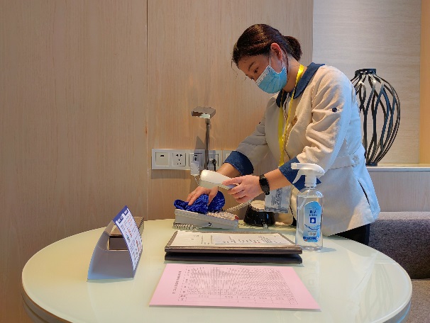 面對會議期間高頻次的清掃量、大量的房內物資配備以及住店客人們的各樣需求,客房服務員們都能做到忙而不亂,將最好的房態(tài)呈獻給會議代表,讓他們感受家一般的溫馨。PA也加強對公共區(qū)域的衛(wèi)生清潔,保證酒店整體清潔舒適。