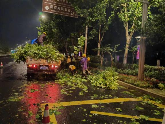 集團園林經(jīng)濟公司作為河西地區(qū)市政道路及綠化管養(yǎng)的主力軍,黨員干部沖在前,全體應(yīng)急人員奮戰(zhàn)在所轄市政道路綠化項目一線,累計出動巡查消險人員329人次,巡查排險車輛32臺次,搶險范圍包括市政道路、市政水務(wù)、道路綠化、公園綠化養(yǎng)護等環(huán)節(jié),共計清理倒伏樹木147株,清理斷枝303處,排除積淹水點15處。