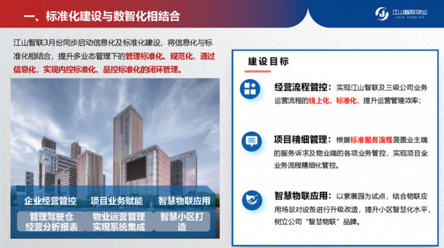 會(huì)上,設(shè)計(jì)成本部匯報(bào)了集團(tuán)各公司標(biāo)準(zhǔn)化工作整體推進(jìn)情況,奧體公司、新城公司、園林公司、青奧城公司、江山智聯(lián)物業(yè)公司、濱江公園公司分別展示了最新的標(biāo)準(zhǔn)化工作成果。各公司標(biāo)準(zhǔn)化的工作緊緊圍繞其主營(yíng)業(yè)務(wù)展開,貼合自身需求,特色鮮明。